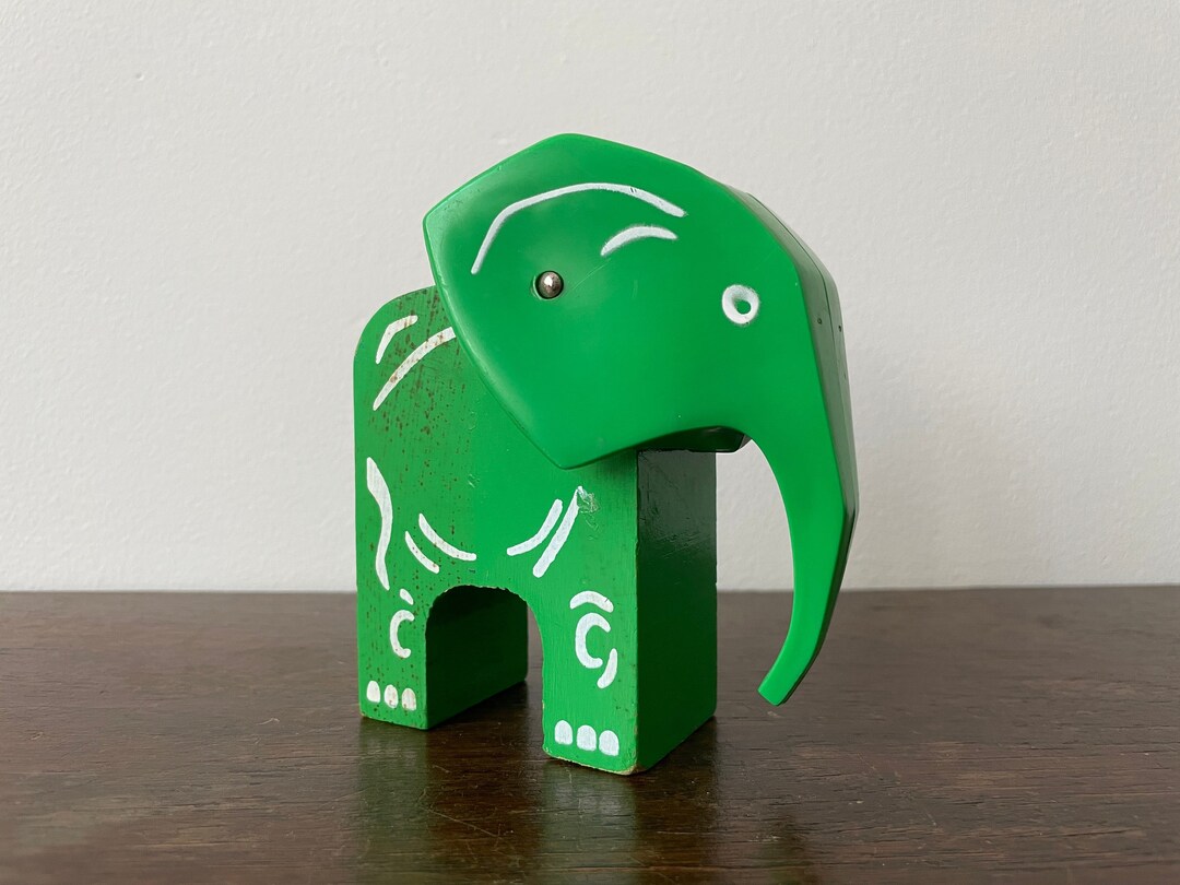 Vintage Wooden Elephant Toy W Plastic Rocking Head Mcm Etsy