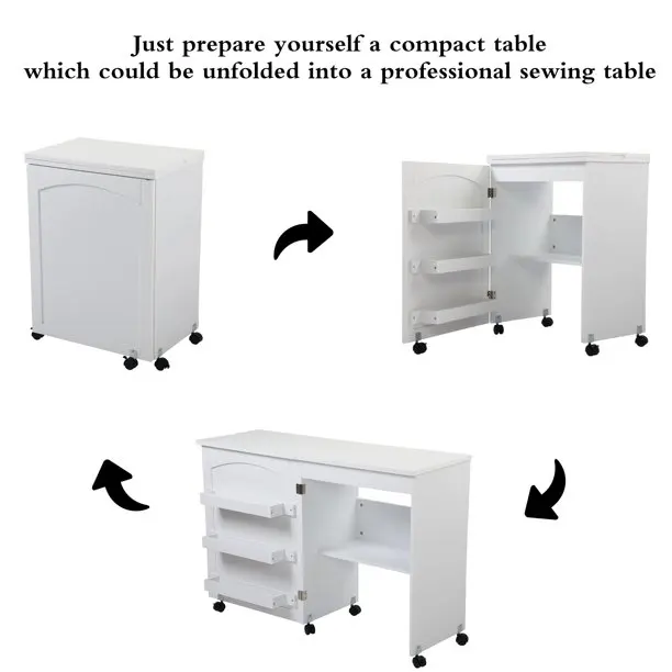 Folding Sewing Machine Table Craft Table With Adjustable Versatile Shelves Storage Cabinet Lockable Caster Buy Sewing Table Sewing Machine Table Sewing Machine Extension Table Product On Alibaba Com
